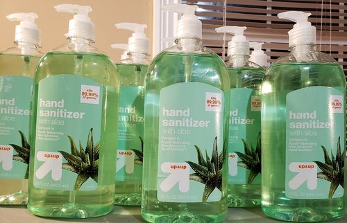 This lot features Up & Up Hand Sanitizer w/ Aloe - Big 32-Ounce Bottles. These large pump bottles are recent shelf-pulls from Target stores. Large, 32-Ounce pump-style bottles. Expiration Date: 06/2021.