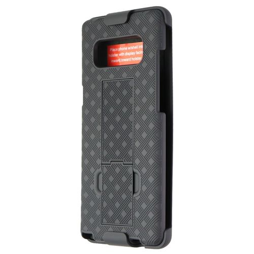 This lot includes 25 Verizon Shell and Holster Combo Case for Samsung Galaxy Note 8 - Black. From Verizon the Shell & Holster Combo Case with Kickstand for Samsung Galaxy Note 8. This case and holster combo come with a black finish. A two-in-one carrying solution combines peace-of-mind protection with handset accessibility. Fixed 180-degree ratcheting belt clip allows for secure and comfortable positioning. Durable industrial-grade plastic protects against daily wear and tear. Black rubberized crisscross texture with micro suede lining provides added grip. Foldout kickstand for hands-free viewing.