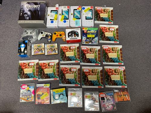 This lot includes different Video Games, Controllers, Tablets, Security Cameras, Cables, and More Electronics. All are returns from a big box store. Please see manifest and photos!
