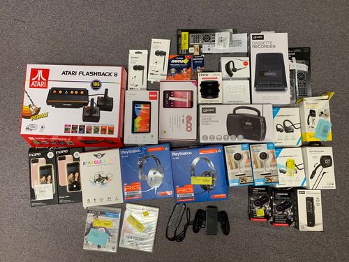 This lot features different Video Games, Tablets, Console, Drones, Headphones, & More from GPX, RCA, Plantronics, Anker, Scosche, and Many More. All returns from a big box store online retailer. See the manifest for products breakdown.