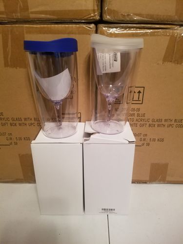 This lot includes 96 units of Vino2Go Portable Wine Glasses in White & Blue Lids. The lot exactly holds 96 White&blue (48-White - 48- Blue). It's a wine sippy cup! Not only does it keep your wine chilled, but the manufacturer also points out that the Vino2Go is ‘Classier than a mug or bucket’ and that there’s ‘No danger of broken glass or spillage.’ The ‘slide-action drinking lid’ is also perfect for if you’re on the move - moving from one part of the beach to another! All items are brand new and ready for retail. Items come in a white plain box.
