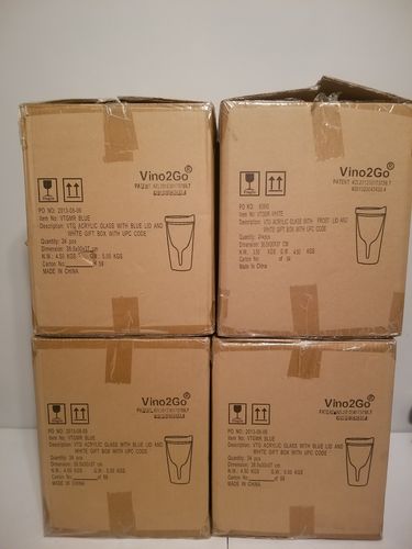 This lot includes 96 units of Vino2Go Portable Wine Glasses in Blue and White Lids. The lot exactly holds 48 Blue and 48 White. It's a wine sippy cup! Not only does it keep your wine chilled, but the manufacturer also points out that the Vino2Go is ‘Classier than a mug or bucket’ and that there’s ‘No danger of broken glass or spillage.’ The ‘slide-action drinking lid’ is also perfect for if you’re on the move - moving from one part of the beach to another! All items are brand new and ready for retail.
