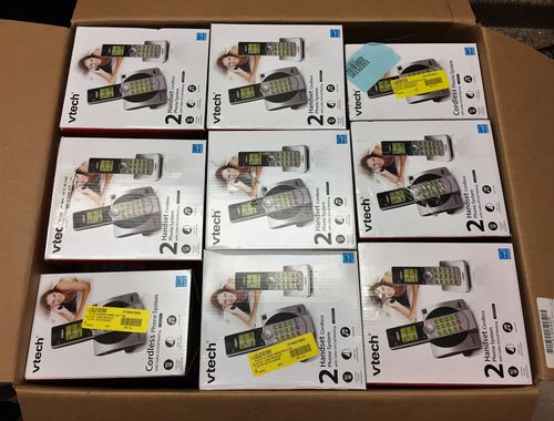 This lot contains various models of VTech Cordless Phone Systems. Please see pictures and manifest. All items in this lot are untested, big box store returns. Some packaging may have labels or stickers. Some items may have damaged or missing packaging, missing parts or have technical issues. Sold AS IS.
