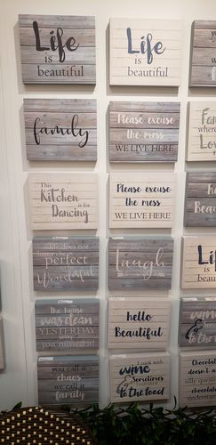 This lot includes 432 units of Mixed Saying Wall Art Signage by ASPEN Brands. Wall Art is in Wood Material and Size is 12 x 10. All signs will hang on the wall - come with a hanger. All items are brand new and retail-ready.