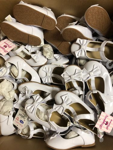 This lot features 150 pairs of White Cute Toddler Shoes With Bow By Stepping Stones. All items are brand new and retail-ready.