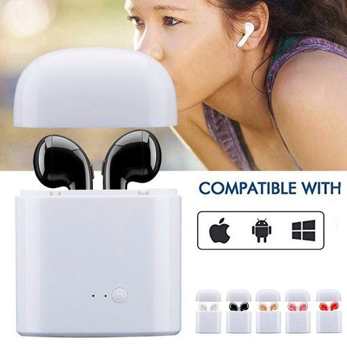This lot contains different HBQ I7 TWS Twins Wireless Earbuds Mini Bluetooth Headset Earphone with Charging Case for iPhone 7, 6s, 6 Plus, Galaxy S8 Plus and More in 5 colours. Earbuds support all with Bluetooth-enabled mobile phones. All items are new and retail-ready.