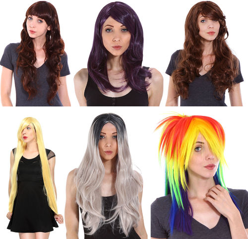 This lot features Women Costume Wigs Party Costume Wig. Material: women costume wigs are made from high-temperature synthetic wig, silky and glamour as human hair. Thick enough, unable to see the netting, Costume wig is both natural-looking and soft touch. You can wear it to parties as well as for daily use, Easy & convenient to wash; Shampoo in cold/lukewarm water, The size is adjustable, and no pins or tape should be required. It should fit most people's heads. Wigs are perfect for Halloween, concerts, theme parties, weddings, dating, drag queen, and any other special occasions.