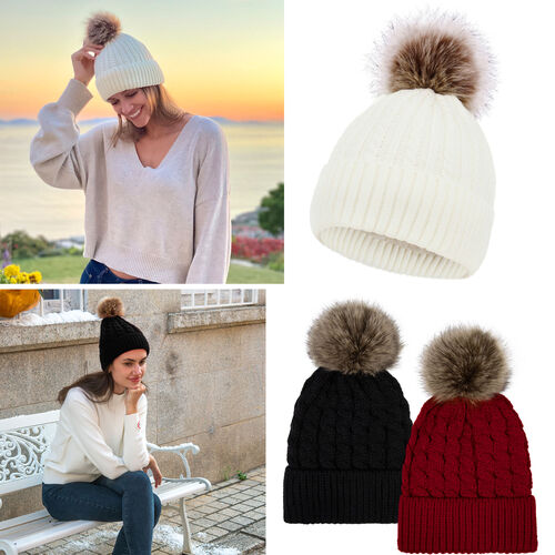 This lot includes Women Knit Beanie Winter Hats with Pom Pom.