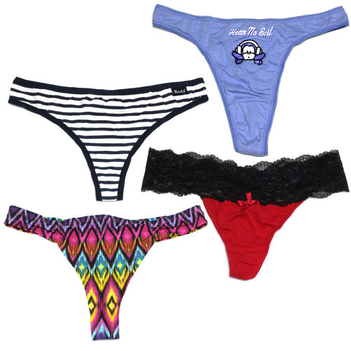 This lot includes Brand New Assorted Style & Size Ladies Lingeries Underwear Thong and G-String Panties. Great Variety of Styles Assortment G-String In Each Package. Material: Lace / Cotton. Size: Assorted Sizes, The Sizes Fit For Most of the Adults. Sexy Design Woman G-strings, Comfortable Wear Experience, Suitable For Daily Wear For Any Purpose