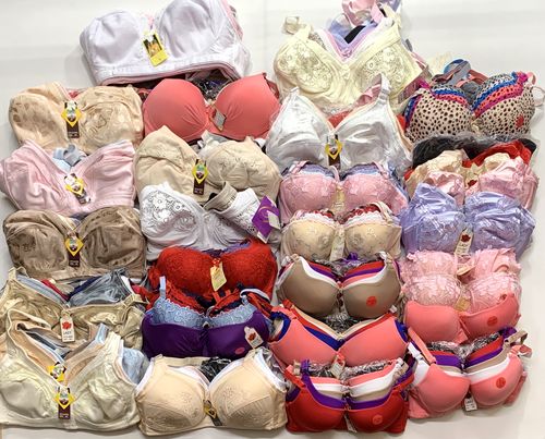 This lot includes 100 units of Assorted Ladies Bras. Mixed Lot Lingeries Underwear. Brands included: Lacy, Sylvia,Queen, Beaute Express. Assorted Size 36-38 And Cup B To D, Material: Lace, Cotton and Spandex. Premium quality and Beautiful Designs, All items are brand new.
