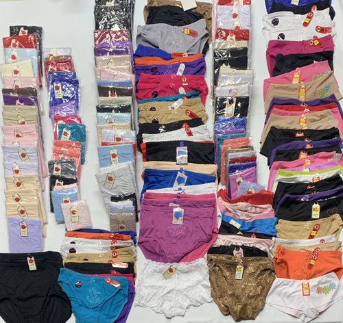 This Lot includes 150 units of Brand New Women's panties in assorted sizes and designs/Styles/colours. Brand: Lacy, Eva Cervantes. Sizes will be S,M, L, XL,2XL and 3XL .