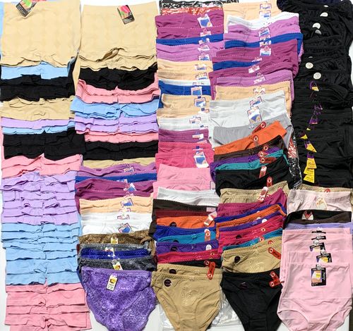 This Lot includes 180 units of Brand New Women's panties in assorted sizes and designs/Styles/colours. Brand: Lacy, Eva Cervantes. Sizes will be M, L, XL, and One Size Fit Most.