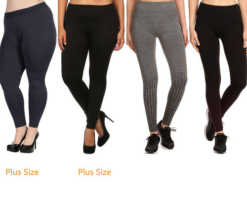 This lot includes assorted Women's Fleece Lined Full Length Leggings Tights Pants. Plus Size: Length:36”, Waist: 26"~42", and Hip: 34"~50". Material:65% Cotton, 25% Polyester, and 10% Spandex. Size L/XL: Length: 37", Waist: 26.5"-32", Hips: 31"-40", and Inseam: 27". Materials:92% Polyester and 8% Spandex.