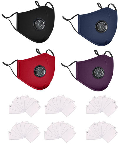 This lot includes assorted Women's/Men's Cotton Face Mask with Filters and breathing valve, suitable for cycling, running, biking, hiking, skiing, woodworking, and other outdoor activities, with elastic adjustable ear loop and nose bridge.
