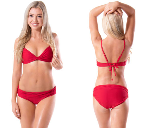 This lot includes 80 units of Women's Push-Up Twist Top and Mid Rise Bottom Bikini Set (Designed in the USA) in Assorted Sizes and Red Colour. All items are guaranteed to be authentic, brand new and ready for retail. Materials: 80% Nylon + 20% Spandex. Sizes are S: Chest: Adjustable, Minimum 23.5", Waist: 29.0"-32", M: Chest: Adjustable, Minimum 24.5", Waist: 31.5"-36", L: Chest: Adjustable, Minimum 25.0", Waist: 34.0"-39", and XL: Chest: Adjustable, Minimum 26.0", Waist: 37.0"-41". See the manifest for products breakdown.