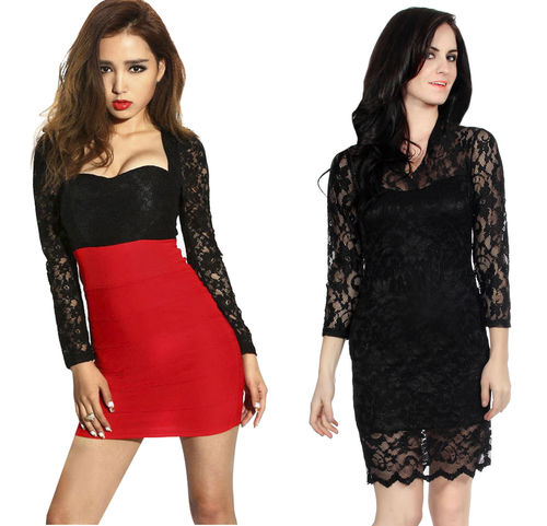 | Fitted Mini Dress with Floral Lace Detail Matching G String, Black | Brand New | $13 | 10 | $130 | |||