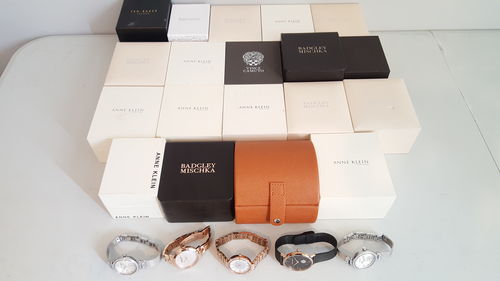 This lot features Women's Watches by Anne Klein, Badgley Mischka, Vince Camuto and More. There are 24 units. All items are Customer Returns which have been tested and are fully working. These watches have been cleaned where necessary and the majority ship in original retail box with paperwork, please see manifest and pictures for details.