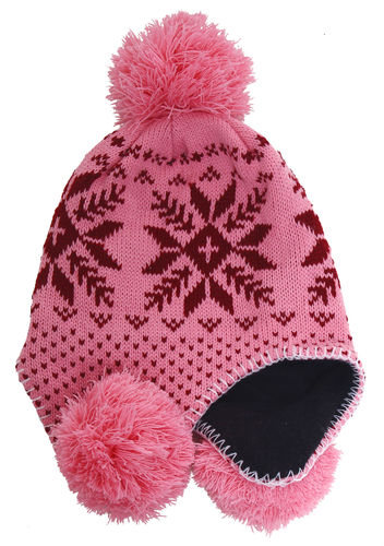 This lot features Women's Winter Snowflake Knit/Mapleleaf Knit Earflap & Pom Balls. Fashionable warm and an incredibly comfortable knit hat with earflaps. Available in eye-catching snowflake & reindeer patterned designs. This knitted 3 pom-poms styled hat keeps you warm and looking good throughout the cold seasons and various outdoor sports. Material: Outer: Acrylic; Inner: Polyester and Size: 8.75" W x 14.5" H. Package Includes:1 x Beanie.