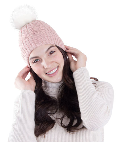 This lot includes Women's Winter Warm Knitted Faux Fur Pom Pom Beanie Hat. This delightfully cozy knit beanie features a whimsical faux fur pompom at the top, a beautiful patterned cable knit, and an irresistibly soft Sherpa lining inside, making it an excellent choice for braving chilly winter weather. Made of a stretchy, breathable acrylic blend in an ultra thick, dual layered chunky knit for unbeatable comfort and a perfect fit. Covers the ears for extra protection, and includes a foldable cuff that can be adjusted as desired. Material: 65% Cotton and 35% Acrylic. Size: Inner Diameter 8.5", Height 11", Brim 2.5".