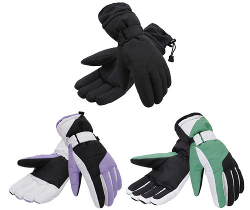 This lot includes Women Sports Winter Warm Windproof Waterproof Thinsulate Snow Gloves. Material: Woven Polyester, 3M Thinsulate Lining. S: 6.5 inches from elastic to end of middle glove finger, 4.5 inches across palm of gloves, 9.5 inches total length. M: 7 inches from elastic to end of middle glove finger, 5 inches across palm of gloves, 10.5 inches total length. L: 8 inches from elastic to end of middle glove finger, 5.25 inches across palm of gloves, 11 inches total length.