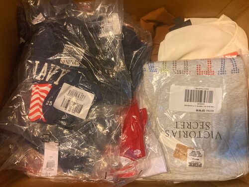 This lot includes brand new women's tees and tanks from The North Face, Victoria's Secret Pink, Old Navy and others. Most items are brand new in original packaging with tags, a few may have open bags but all have original tags.