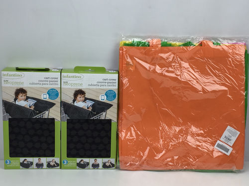 This lot holds several bags and covers from Ziploc, Rhode Island Novelty, Infantino, and more. All of the items are in new condition.